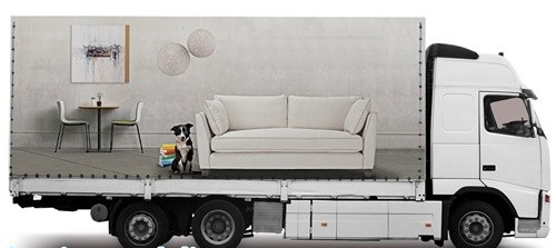 • يُنقل الأثاث بواسطة ترولات يدوية إلى شاحنة النقل.
